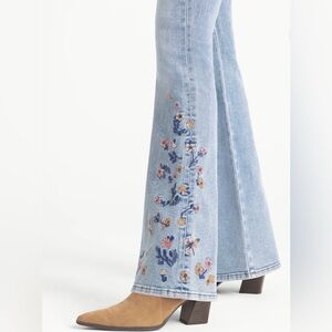 (Q4) Jessica Simpson Daisy Skinny Flared Jeans for women, size 6, embroidered bell bottoms, bohemian, casual, new with tags, see photo for details Stylish light blue flare jeans with floral embroidery. Perfect for a chic and casual look.