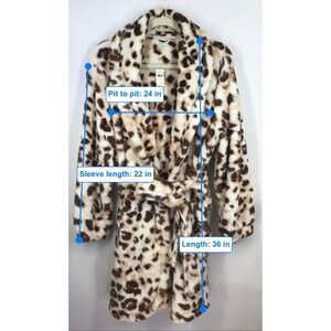 Aerie Plush Leopard Animal Print Robe Belted Cozy Lounge Sleepwear Women's M