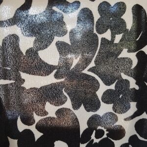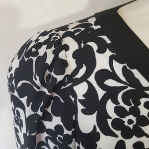 Ann Taylor Loft Long Sleeve Semi Sheer Black & White Floral Blouse With Black Contrast Cuffs And Neckline.