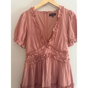 Trixxi Ruffle Trim Mini Dress V Neck Short Sleeve Pink Summer Party