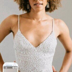 NWT Laudae off-white/nude fitted lace wedding dress with train