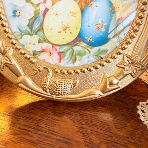 3-Oval gold frame with bunny is light weight plastic and glass.