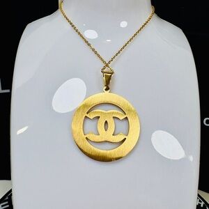Elegant gold-tone pendant monogram necklace, perfect for any occasion. Adds a touch of luxury to your outfit.