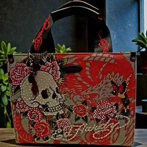 Make a bold statement with the Ed Hardy Red Skull and Rose Tote Bag. Featuring a striking skull and rose design, this bag is perfect for adding an edgy touch to your outfit. Ideal for everyday use, it combines style and functionality.