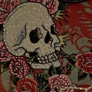 NWT ED HARDY Love Kills Slowly Roses Skull Rhinestone Denim Bag 11"x8.5"x3.5"