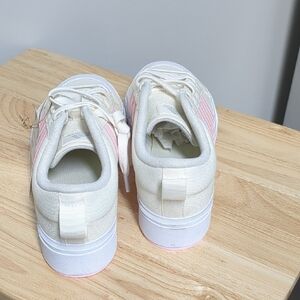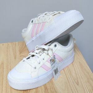 Chic Adidas sneakers for women. Cream base with pink accents. Durable and trendy for daily adventures.