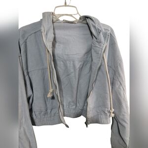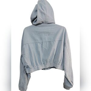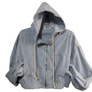 2787) Double Zero Baby Blue Corduroy Cropped Zip Up Hooded Jacket Size Large