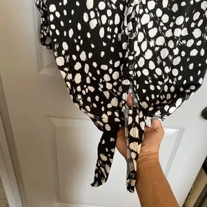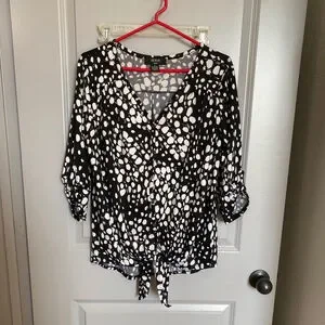 Women's VERVE Blouse Black/White Print Tie-Front Size M #0015