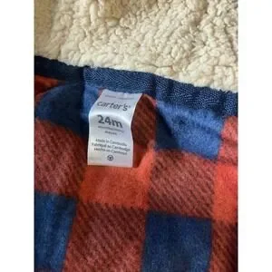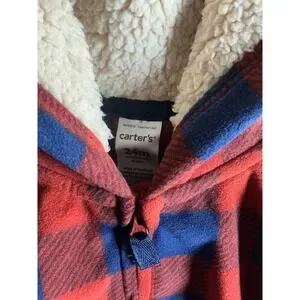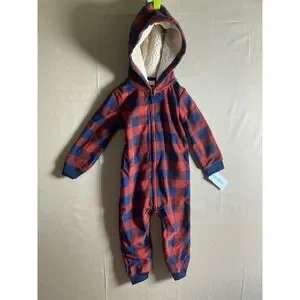 Carters Baby Boys Red Blue Buffalo Plaid Fleece Hooded Jumpsuit 24M 1M720010