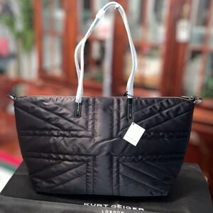 Kurt Geiger NWT Recycled Union Jack Black Quilted Shopper Tote Bag Purse