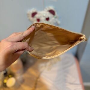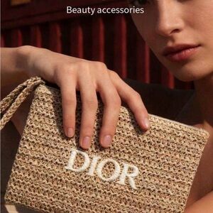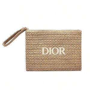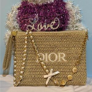 Chic Dior clutch in beige crochet. Features a stylish gold chain add to make handbag or crossbody-unbranded.Ideal for versatile wear.