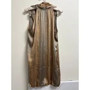 Derek Lam DesignNation, Derek Lam dress, DesignNation dress, women’s sleeveless dress, bubble hem dress, draped neckline dress, draped v neck, pull on dress, unlined dress, lightweight dress, summer dress, event dress, cocktail dress, party dress, day to night dress, contemporary dress, modern dress, chic dress, minimalist dress, elevated casual, effortless style, fashion forward, relaxed fit dress, abstract print dress, ikat inspired print, earthy tones dress, bronze dress, taupe dress, gray dress, sage tone dress, subtle sheen fabric, vacation dress, resort wear, city chic, quiet luxury, clean girl aesthetic, modern feminine, understated elegance, neutral palette, versatile wardrobe staple