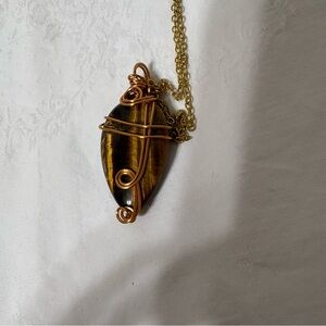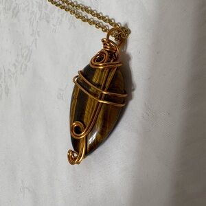 wire-wrapped tiger's eye gemstone pendant necklace.