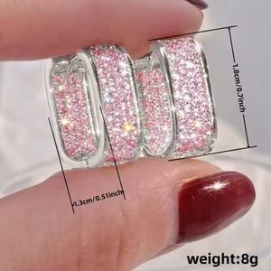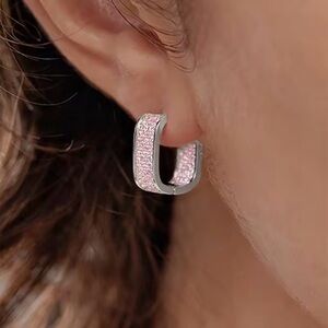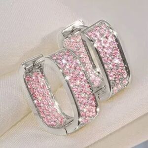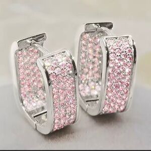 New Silver Pink Sapphire Rectangular Crystal Hoop Earrings
