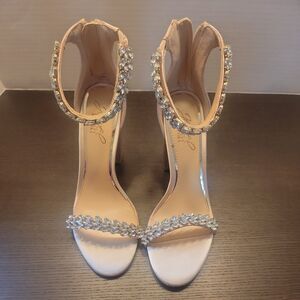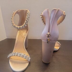 Jewel Badgley Mischka Mayra Ankle Strap sparkle Sandals Beige S6 Wedding or Prom