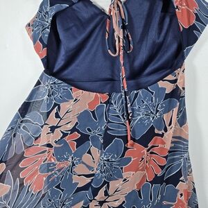 Lulus Fragrant Blooms Navy Blue Pink Tropical Floral Print Chiffon Lined Maxi Dress Size Small