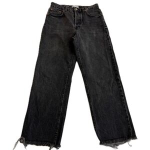 Zara Jeans Womens Size 6 Black Wide Leg High Rise Button Fly Raw Hem Denim