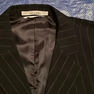 Sophisticated charcoal pinstripe suit jacket by Mauro. Ideal for business or formal events. Classic design with a modern touch.