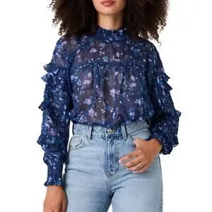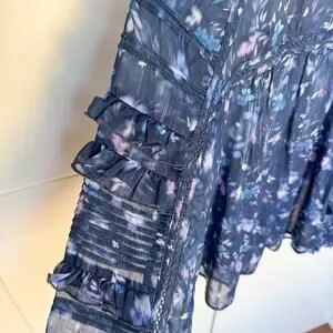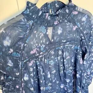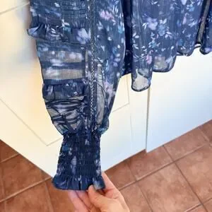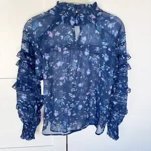French Connection Anifrida Arica Pleat-Sleeve Top Women’s XS Blouse, Long Sleeve