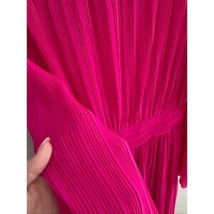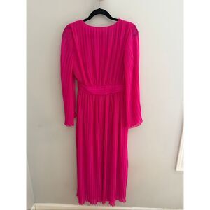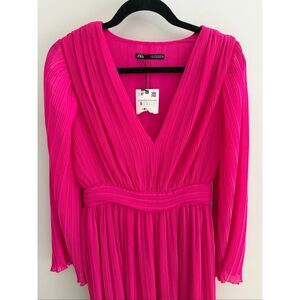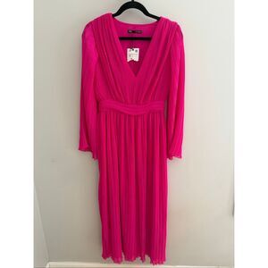 Zara Pleated Midi Dress NWT Hot Pink LS Fuschia, Size Small S Barbie Barbiecore