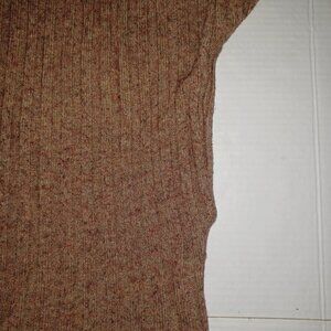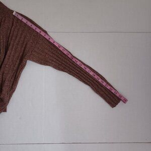 Size Small - Women's Madewell long sleeve cropped mock neck sweater in the color brown the material is 55% wool, 25% polyamide, and 20% cotton. Note the sweater has alterations on the lower side of the sweater as seen in the last two photos otherwise in good preowned condition