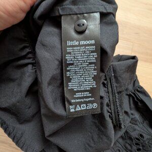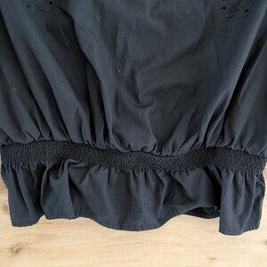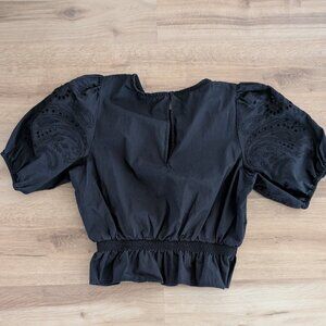 Little Moon (Aritizia) Large Embroidered Eyelet Blouse Black Puff Sleeve Top