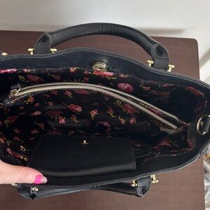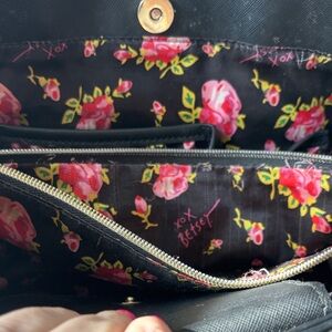 Betsey Johnson Black and White polka Dot Tote or large purse with rose interior