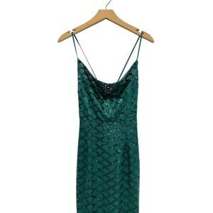 Lulus Stop and Glow Emerald Green Sequin Cowl Neck Maxi Dress size Small