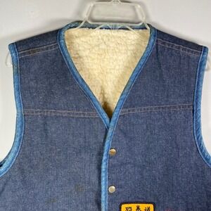 Vintage Carhartt Denim Sherpa Lined Vest Blue Tae Kwon Do Patches Mens