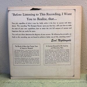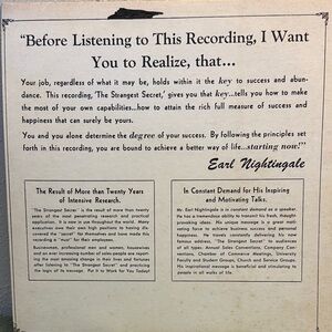 Earl Nightingale’s message is available everywhere but this album is a classic collector’s item. It is an educational and motivational part of history.