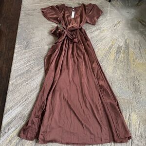 Baltic Born Sicily Satin Maxi wrap Dress Rosy Brown slip dress classy XS new