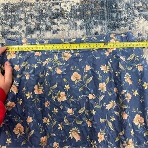 Pendleton Plus Blue Feminine Floral Modest Linen Blend Vintage 90s Midi Skirt 14