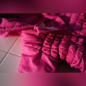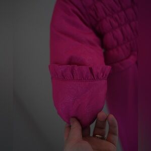 Adorable Rothschild Baby Girls’ Floral Lace Embossed Snowsuit Pram in Size 12 Months in the prettiest bright pink. This one-piece winter essential is designed to keep baby warm, comfy, and cute during chilly days.