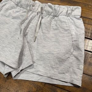 I have here this gorgeous light gray soft comfortable stretch athletic shorts. This pair of shorts is by Lululemon and is a size 8.