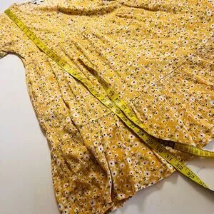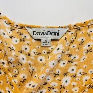 Davi & Dani Floral Print Short Sleeve Flare Dress Size S Small Yellow Multi