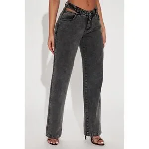 Fashion Nova Got A Secret V Front Straight Leg High Rise Jeans Size 18 NWT Gray