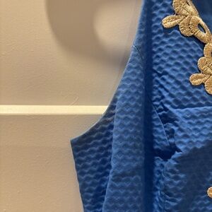 Lilly Pulitzer Pearl shift in lapis blue with gold details. Size 0. Great condition, just had some minor wear under the arms. Not noticeable unless inspecting closely (see pics).