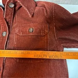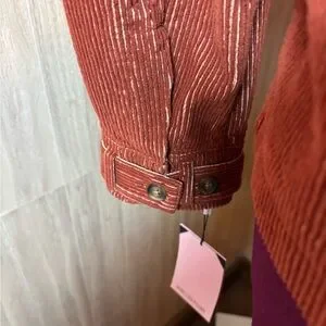Stylish terracotta corduroy jacket. Features button closure and front pockets. Ideal for layering. NWT See pics for measurements.