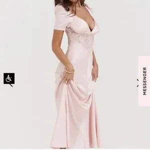 Elegant pink dress by House of CB featuring delicate lace details. Perfect for any special occasion.