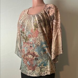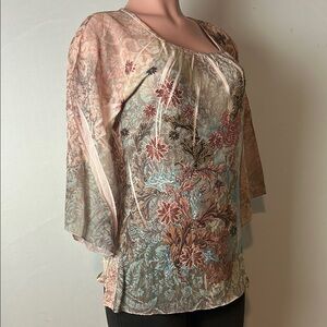Chicos Women’s Top Shirt Tie Dye Embellished L3/4 Bell Sleeve Size 2(Large)