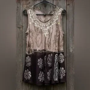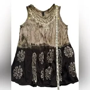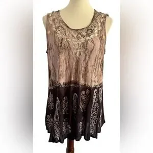 Sacred Thread Brown Tan Floral Embroidery Lightweight Blouse Size Medium OS