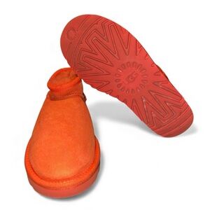 Vibrant orange suede ankle boots. Cozy and stylish for any occasion.