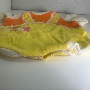 Charming baby romper with a Cabbage Patch Kids design. Features bright orange, yellow, and cream colors.