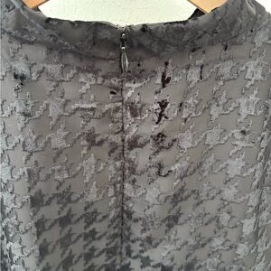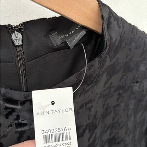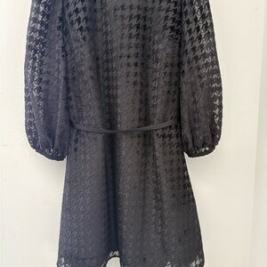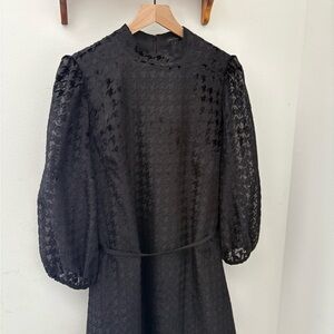 Chic black houndstooth dress with long sleeves. Features a stylish belt and elegant design. Perfect for any occasion. New with tags Ann Taylor black houndstooth dress in a flattering A-line silhouette. Features a chic high neckline, sheer puff sleeves, and a removable belt to accentuate the waist. Lightweight textured fabric with a subtle houndstooth pattern makes it perfect for work, parties, holidays, or special occasions.
