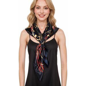 Women's Red/Green Head Scarf Like Silk Printed Square Hair Bandanas 35 Inches