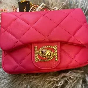 Bebe Hot Pink Quilted Shoulder Bag with Gold Chain