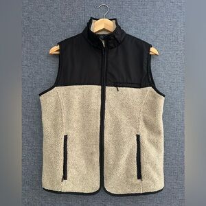Vintage 02 Women’s Black and Cream Fleece Vest Size L