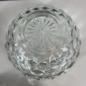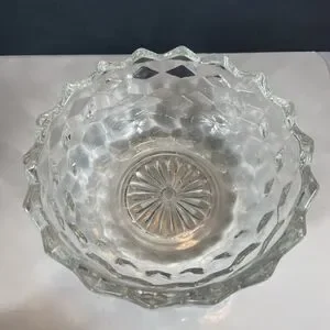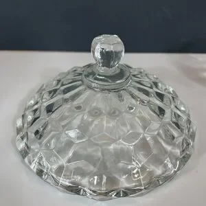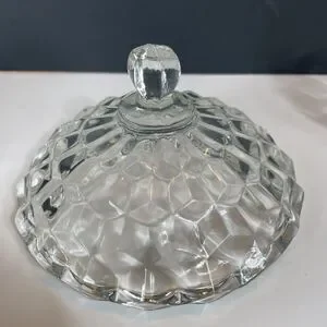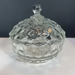 This mid-century modern piece is perfect for adding a touch of American-themed nostalgia to your home. The candy dish is an original, licensed reproduction and is hand wash only. It is made of glossy glass and is ideal for decorative use. The Fostoria American candy dish is a great gift for collectors of vintage home decor.