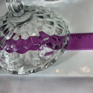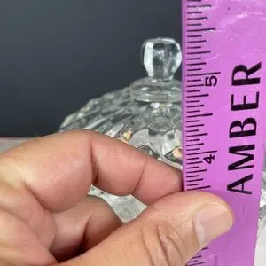 This vintage Fostoria American candy dish is a charming addition to any home decor. The clear glass dish features a round shape with a crystal lid. The dish has one compartment and measures 5.5 inches in diameter and 5 inches in height.