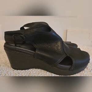 Dansko Vanda Black Pebbled Leather Slingback Peep Toe Wedge Sandals Sz 41